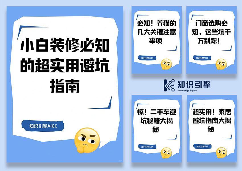 以蓝白为主色调,白色不规则图形承载文字,搭配蓝色装饰与思考表情,简洁醒目,活泼有吸引力。